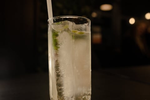 Witte Rum | Goude Glitters | Clarified Munt & Limoen Cordial | Soda